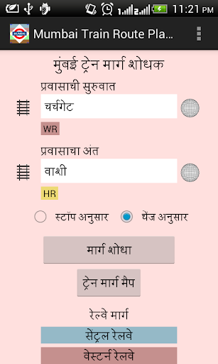 This app helps you find Local Train Metro Monorail routes which can be used to travel by train from one location to another in Mumbai and its suburbs.