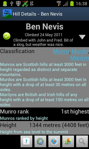 Munro Bagging is an application that allows you to browse through all of the significant hills in Britain, including the Munros, the Murdos, the Grahams, Marilyns and Corbetts.