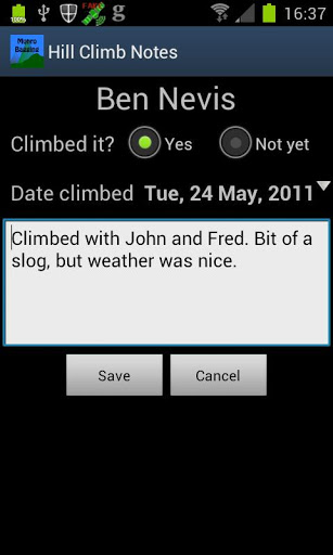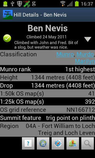 As well as providing information on each hill (useful for walk planning), you can record notes from when you climbed it.