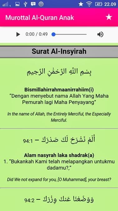 The application is completely offline and does not require an internet connection at all, including listening to murottal. Made to facilitate children when learning to read, recite and memorize short letters in the Koran. Hopefully bring blessings and benefit all.