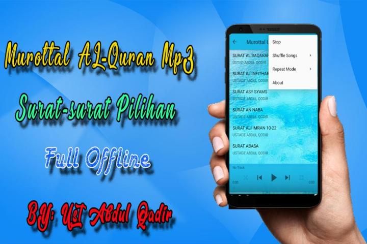 Aplikasi alquran mp3 surat-surat pilihan dengan qori USTADZ ABDUL QODIR dengan lantunan suara yang begitu merdu dan juga bersifat 100% offline sehingga anda bisa memutar app ini kapan saja dan dimana saja,