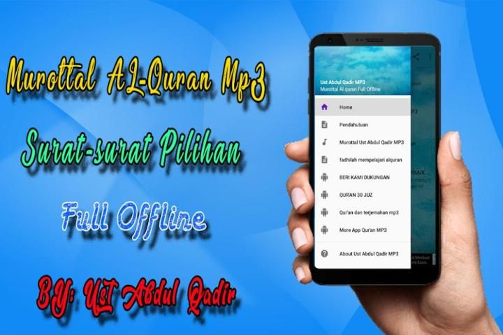 Alquran mp3 application of selected letters with qori USTADZ ABDUL QODIR with melodious chant and also 100% offline so you can play this app anytime and anywhere,