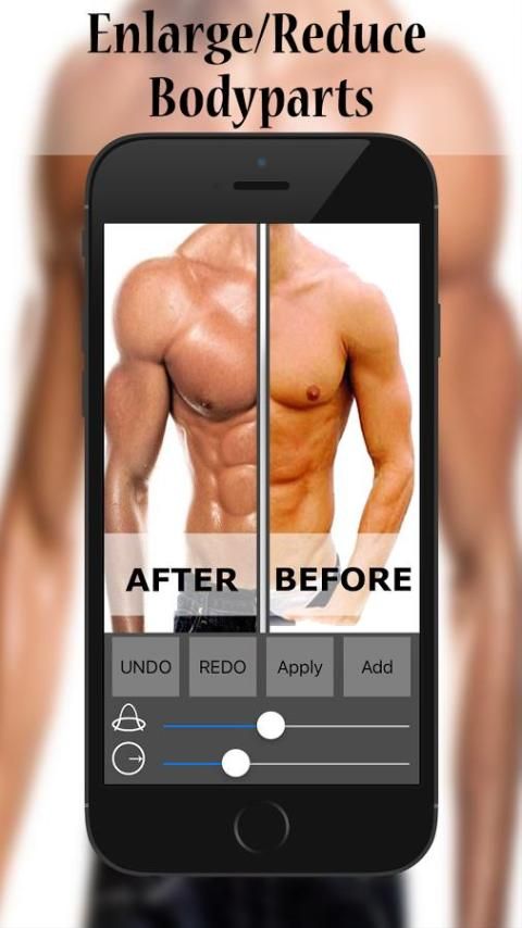 Muscle Maker App Bodybuilding Photo Editor can enlarge Body Parts like Biceps or Triceps! Get a sports Shape of Body or a Sixpack on your Photos now! Edit your Muscles to match the perfect size!