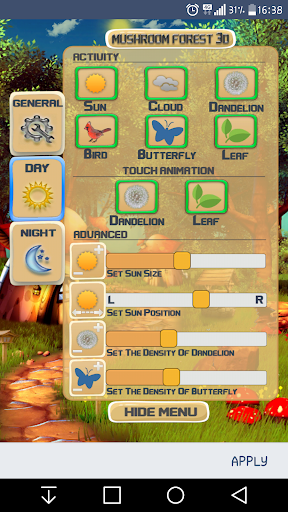 On-Off objects : Moon,Sun,Cloud,Butterfly,Firefly,Bird,Dandelion,Leaf,