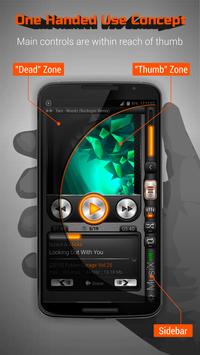 The main player controls are within access of the thumb.