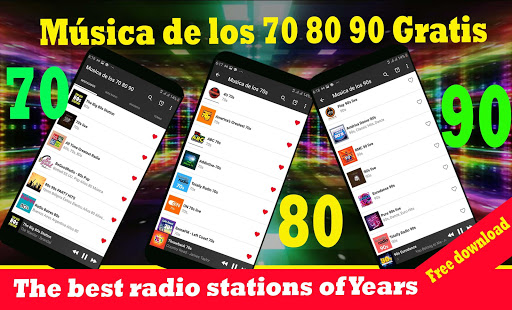 Free music from the 70s 80s 90s in Spanish, Enjoy your favorite music hits from the 60s, 70s, 80s, 90s and 2000s wherever and whenever you want from your phone