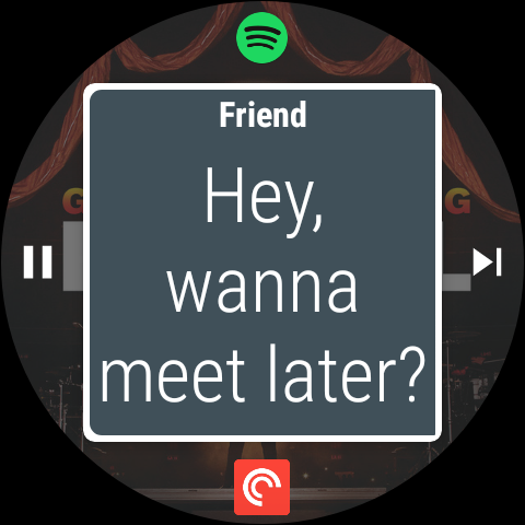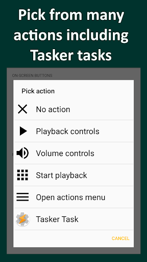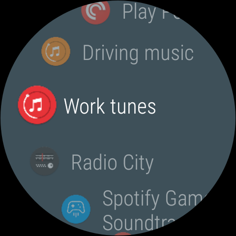 If the four full-screen actions are not enough, you can access extra action list by swiping upwards, which gives you unlimited amount of actions, to cover all your music apps and playlists. All actions are completely customizable, including their icons and text.