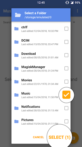 i think this app got the parent folder wrong / or does not set proper security request thus causing it not being able to read files on the phone it may work rooted device bit does not for non - rooted device