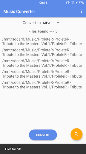 Since this app doesn't search files using the internal Android media library, it is able to find files that are not recognized by the Android system, making it easier to convert those already copied to the device.