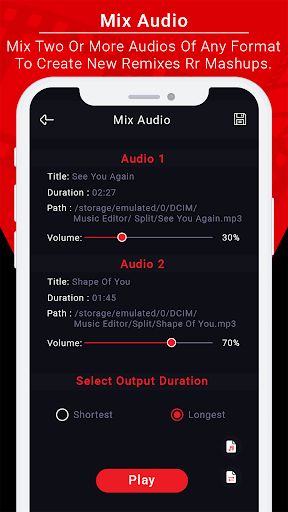 ➜ Mix two or more Audios of any format to create new remixes or mashups.