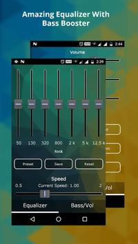 Powerful equalizer, Quick search all music and audio files, Easy to support all music & audio file formats, Custom background skin.