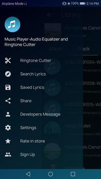 Music Player - Audio Equalizer & Ringtone Cutter is a New, Stylish, Powerful and Fast Music Player with elegant design. Music Player lets you manage all your music files quickly and easily.This audio player supports almost all types of mp3, midi, wav, flac, raw, aac files and other audio formats. Easily browse and play music songs by genres, albums, artists, songs and folder.