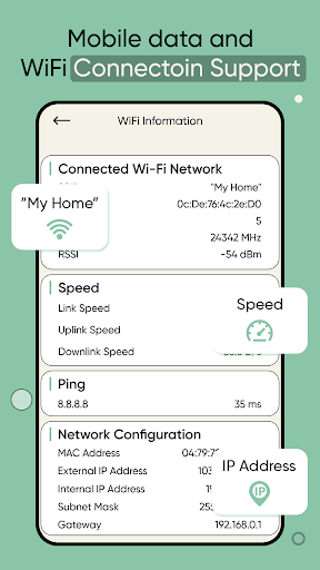_View all wifi info like connection network, current speed, ping, or network configuration