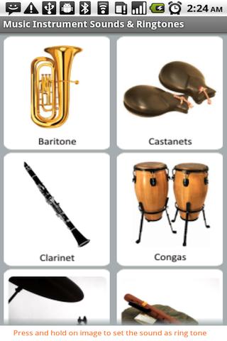 Music Sounds amp; ringtones is a fun and educational application for your android phone that you can use to have your children learn the sounds of various musical instruments Just touch any of the instrument and enjoy the sound. And, setup for Ringtones, Notifications amp; Alarm too.THOUSANDS of people already enjoying.