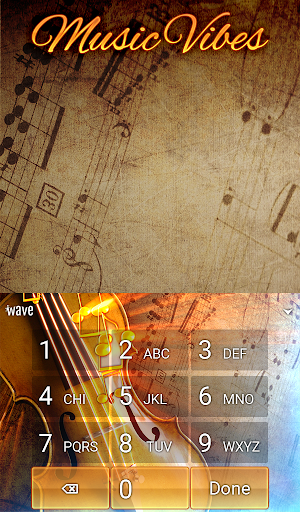 The custom call screen design is the final touch of our free theme Music Vibes Animated Keyboard. Fans of moving backgrounds love this cool dynamic twist. Try this option for a full Android custom look!