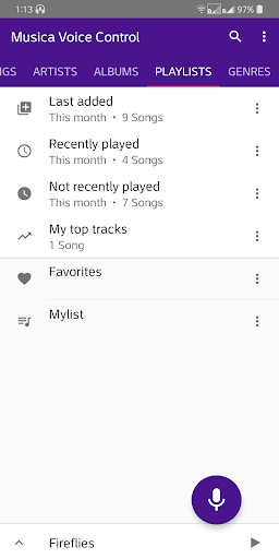 . It allows you to play songs stored on your device with the power of your voice. Just speak the name of the song, artist or album and this app will start playing the songs you want to listen. Musica player features a beautiful, fast and intuitive interface and lets you play all of the songs on your phone. It saves you time as you don't have to browse through the playlist for the song you want to play. Just speak and it will play!