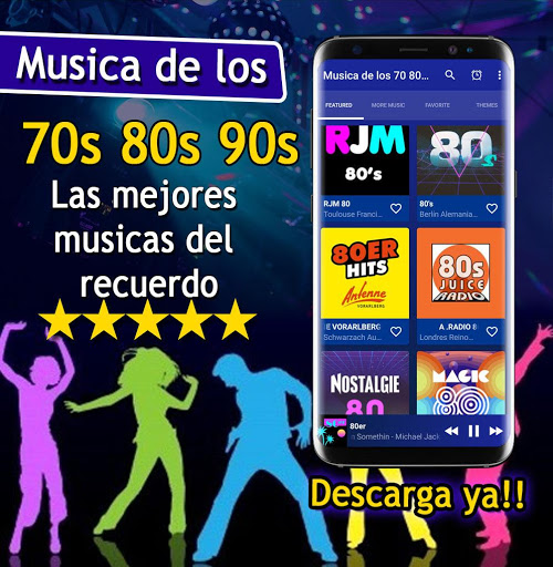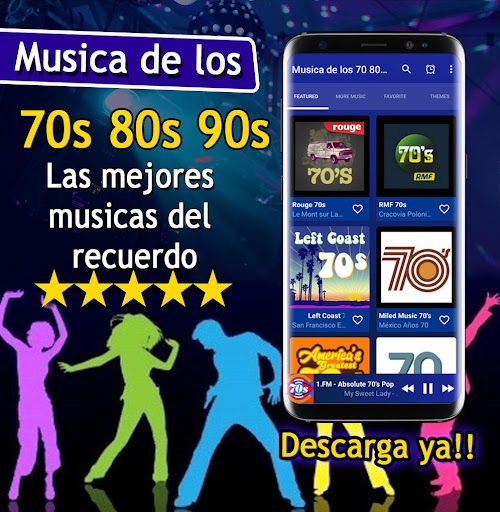 With music from the 60s, 70s, 80s and 90s in Spanish, turn your mobile phone into real fun and adrenaline, you can also enjoy the variety of music from all the best music representatives of the memory.