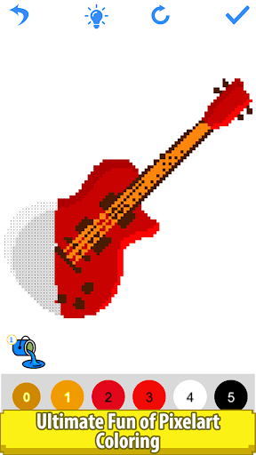 A very smooth game play,choose your favorite art from a ton of instrumental pictures of different varieties.Now you feel relax while coloring and after coloring,there is something special for you like ownership of instrument.Are you ready to Color?