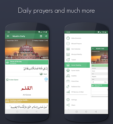 Athan, Ramdan, Prayer Times, Qibla Compass, Hijri calendar, Widget, Prayer times alarm, Namaz Time, Hadith, Mosques nearby, Dua, Hijri date converter, Names of Allah.