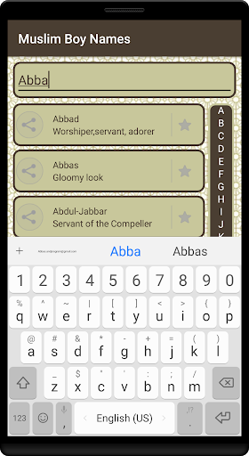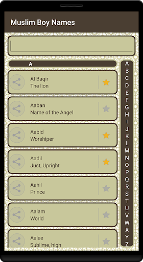 -- Edit Search box provided for a fast search to quickly find Muslim names and meanings.