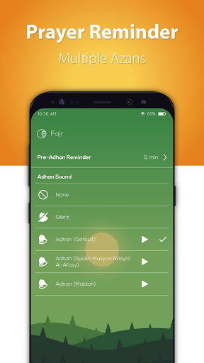 • Azan notification: Choose to auto play audio on time or off it