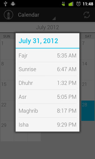 - App does not immediately refresh times after a phone reboot if automatic location is enabled. Wait a few minutes and refresh app.