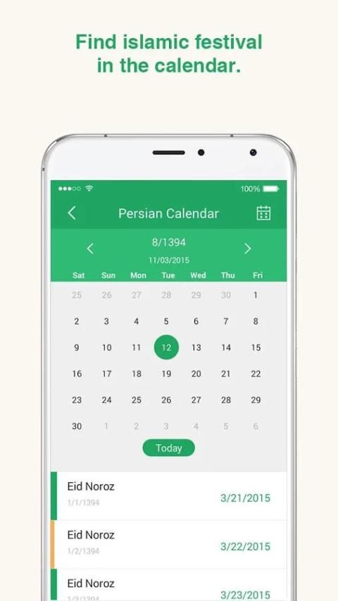 5. Hijri Calendar:Support customization or switch of Iran and Persian calendar, with holy dates.