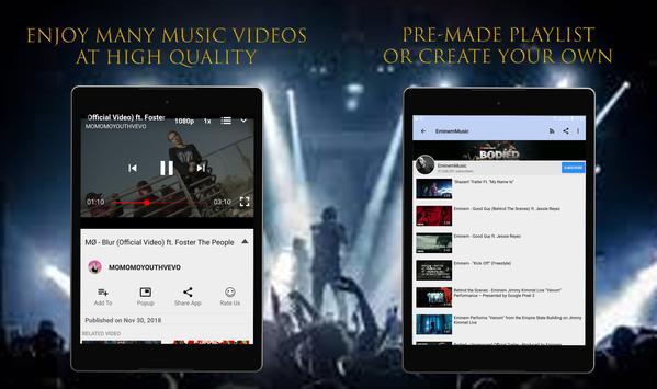 Play your favourite music videos from your favourite artistes. Watch the current and new trending music videos, listen to free songs and explore foreign music videos from other part of the world has never been easier. With this free music video app, you can listen to free unlimited songs, search your favourite artists, create your own music video playlists, and discover new music like you have never seen before!