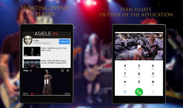 • Floating pop-up music video player and full screen player.