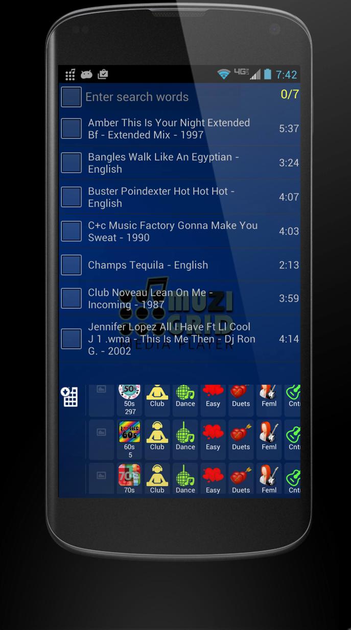 ★ Searches are assisted by keywords taken from entire metadata of media, ex. titles, albums and artists. It takes just a few seconds to find a song, no matter how many songs are there on the mobile device.