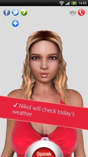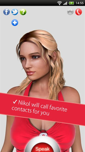 Install your Android voice assistant.Nikol is your virtual voice assistant. Nicole will do the following things for you: Open phone applications Call favorite contacts Search in Google and Google Maps Check today39;s weather Answer on some everyday questions Answer on some dirty questions Animal soundsnd many more...We love creating app , and want to keep them free forever. In order to keep our development running we are using a search service. This app will add a couple search links on your device in the form of an icon, bookmark link and browser homepage. You may delete them easily drag to the trash or delete the link for the browser, if you choose to use them, thanksMost of the permissions are used ONLY for the SEARCH, so don39;t let that bother you.Join my Facebook group: http:facebook.comtonee.orgFollow me on Twitter: http:twitter.comtoneffYou can share this application with Facebook, Twitter, GMail, Yahoo Mail, Google, SMS Message or other.The application can be moved on the SD Card.
