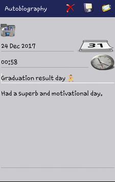 Autobiography app is a very simple application to use which lets you to write your daily thoughts, events, ideas and memories with a simple user interface. All your secrets, feelings, experiences and memories can be organized in this single app. You can use this app as a personal diary through which you can save all your dat and photos ypu have added. This app is designed in such a way that allow you to enter the new notes quickly and easily. Autobiography is the only app which can be used by both males and females.
