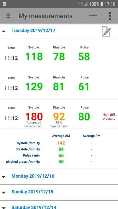 The "My blood pressure" application allows better monitoring of your hypertension. In this case, the history of measurements allows you to see at a glance the evolution over time of your hypertension.