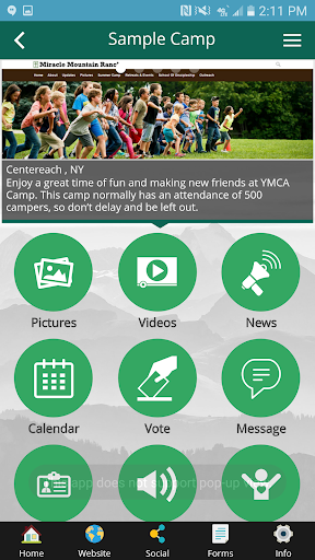 Camps and schools will easily, quickly, and instantly be able to share what is happening at their camps with pictures, videos, news updates, voting, messaging, contact info, and more. Users will have this information pushed to their cell phone immediately wherever they are, organized in an extremely simple and eye-catching format.