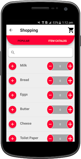 "My Cart" contains more than 500 Grocery items if your desired item is not available in the list you can also add these items.