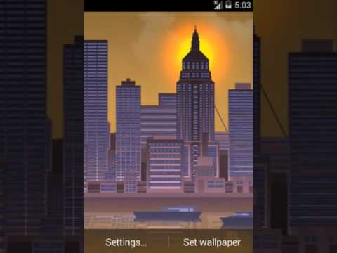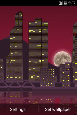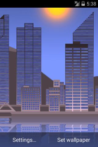 Other features are slowly blowing wispy clouds, gently swaying water with moving boats, a toggle for the parallax movement and texture repeating. Wallpapers also has other amazing effects, such as reflection of the water, moving trains with lighted windows, smooth appearance and disappearance of lighting the windows of houses, the movement of the sun and the moon, the flashing lights on the top of skyscrapers.