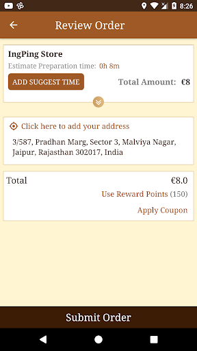 5. Review Order, Submit – Here, you can review the order details before submitting it , add suggest time,apply coupon code and redeem reward points