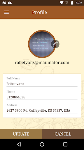 9. Profile – This screen provides the ability to update the profile information like name, number and address.