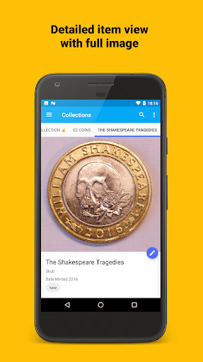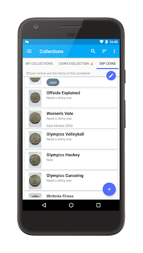 * Create collections with any level of containers (e.g. coin value, stamp country) and items (e.g. coins, stamps, bottle tops)