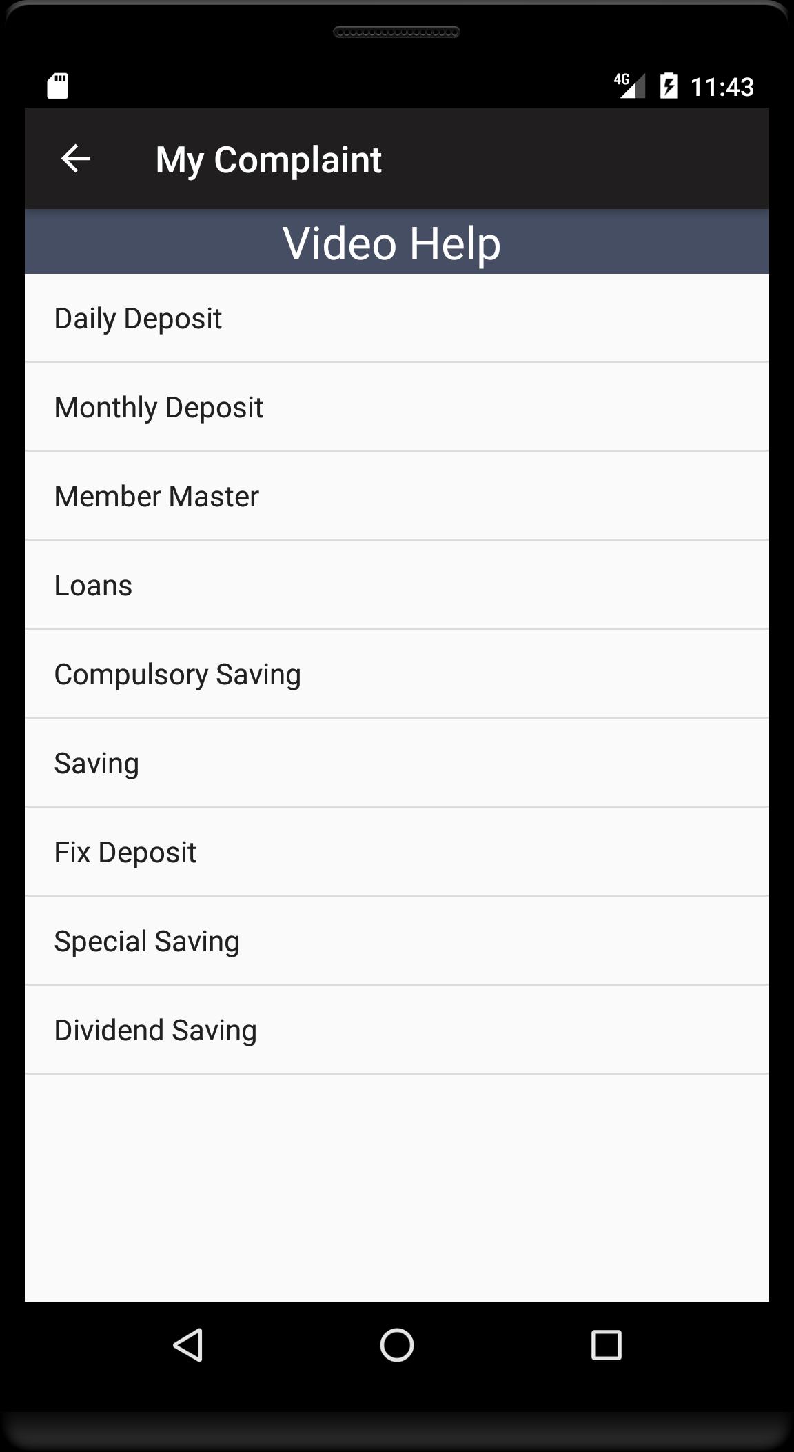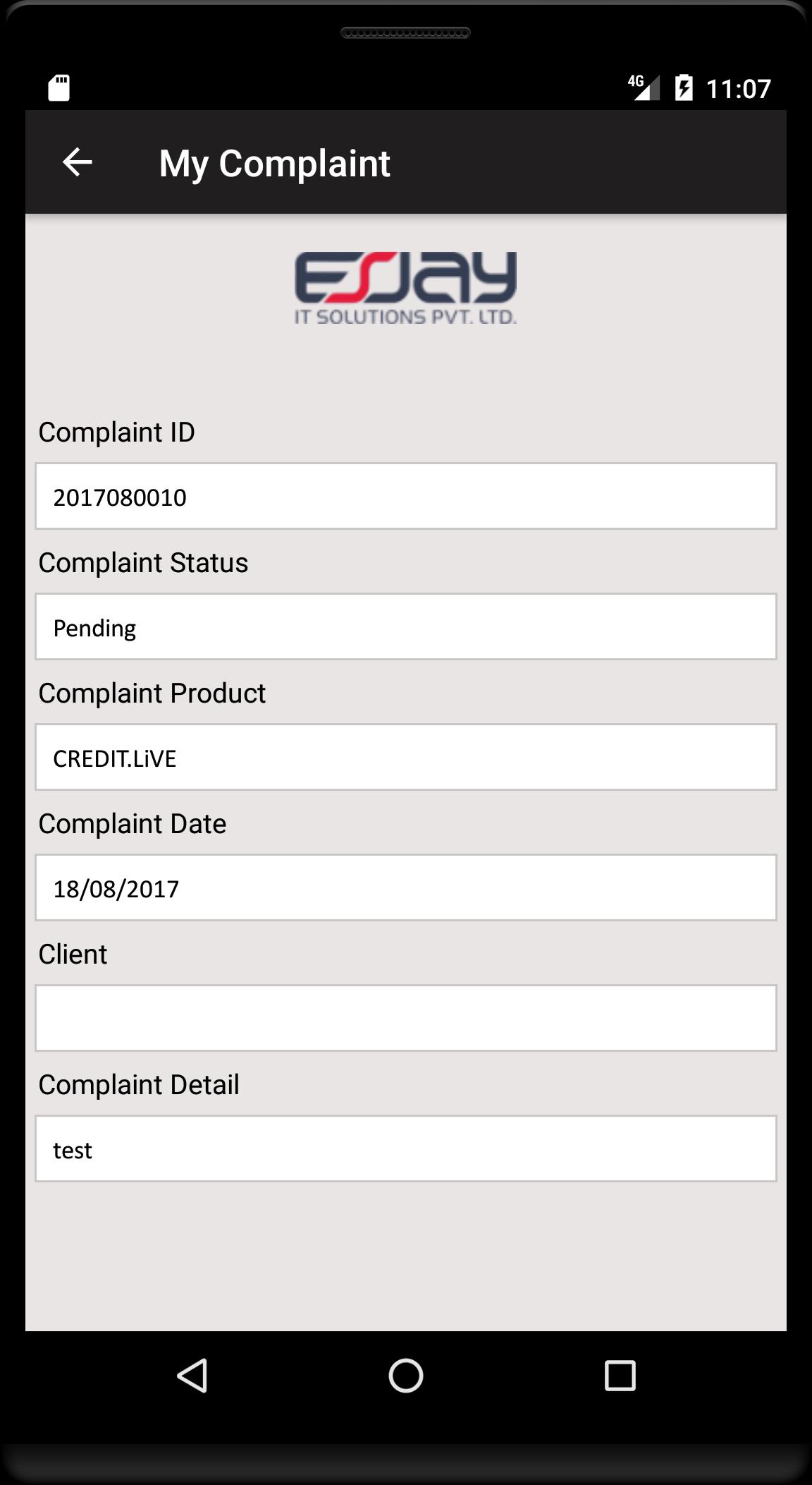 - The Complaint Box App provides facility to the client to submit complaints.