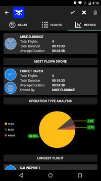 Display metrics, analytics and statistics against drones, batteries and flight history