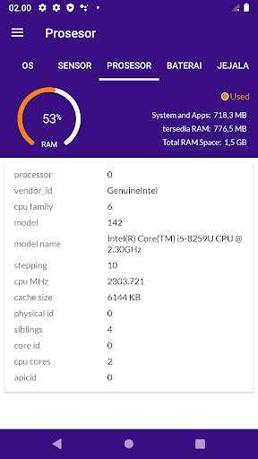 This detail specifications includes all information of CPU, RAM, Storage, OS, Sensors, Core, Partition, Battery, Data Network, WiFi, SIM, Camera, Bluetooth, Display, Supported device features, Manufacturer, Installed Apps, System Apps.