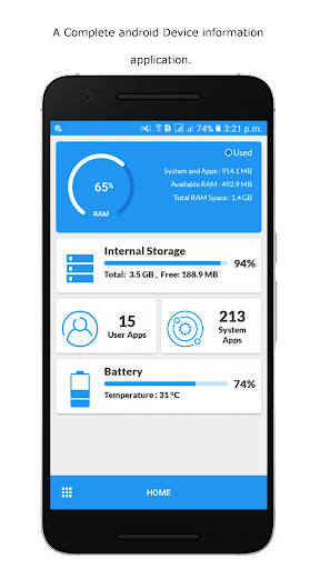 My Device info application is the most comprehensive, powerful, and fancy app that provides you with all the information you need to know about your phone, system, and hardware with the most attractive and beautiful user interface (using Material Design).