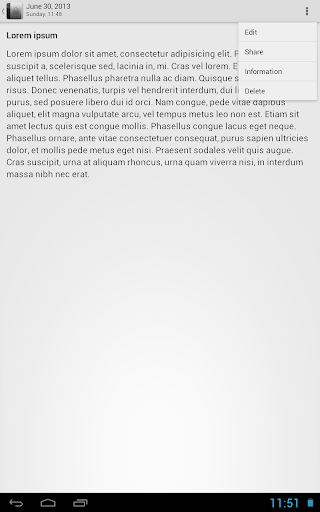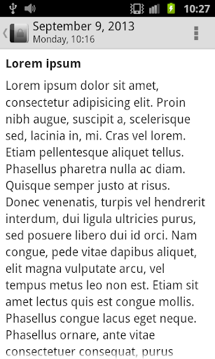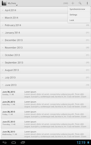 My Diary is an easy-to-use, free app that lets you save and store your own thoughts, memories, secrets, life events or other confidential information and sync them via Google Drive™ between all Android devices you use.