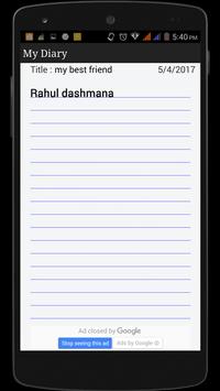 My Diary is a light weight notepad application that allows users to pen down and note their ideas instantly.This application allow users to manage their important schedules, meetings and notes for the same. It gives user a quick and simple notepad editing experience when it comes to write notes, memo, message, shopping list and to do list.