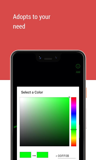 A simple and clean digital clock which allows you to change clock face colour and background colour to your preference.