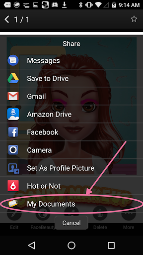 This is a folder where you save, retrieve and share your files to and from. Share any documents, images, files to this folder using android share menu. Once saved in my documents you can retrieve, share to other apps, email, print via additional apps.