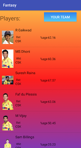 Help us in spreading this app so the percentages shown by us are the same as shown by any fantasy cricket app during the match time.