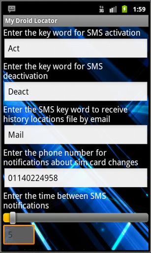 My Droid Locator allows you to receive SMS notifications about your phone location in case you have lost it or has been stolen.Once configured the application, when you send an SMS with the keyword entered, My Droid Locator will respond with a link to google maps including the coordinates of the location of your phone.If your phone is stolen and the sim card is replaced, My Droid Locator will activate automatically and will start sending you the coordinates of the location to the phone that you provided in the configuration.