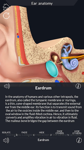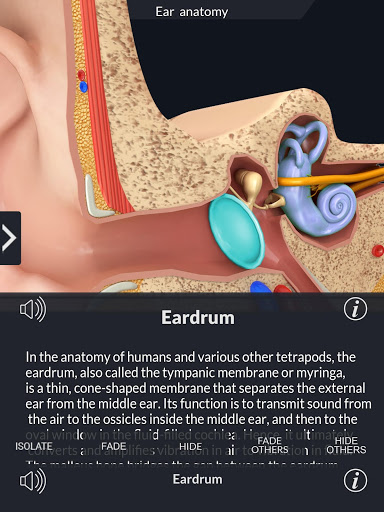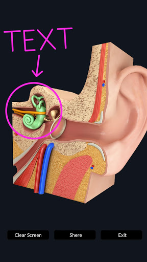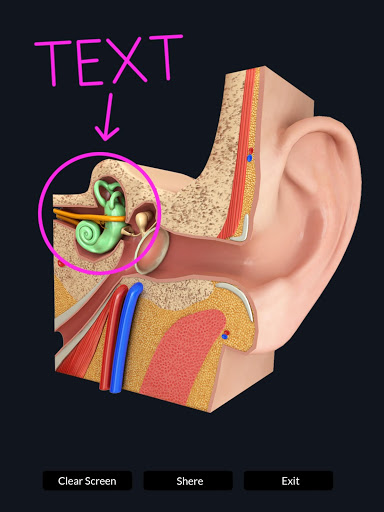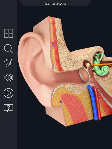 My Ear Anatomy app gives users an in depth look at the human Ear allowing them to select , x-ray view, hide and show individual Ear Parts as well as , draw or white on screen and share screenshots, Audio pronunciation for all anatomical terms and more.